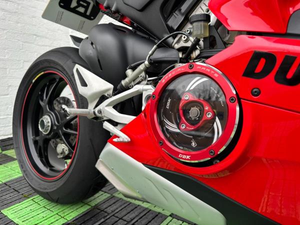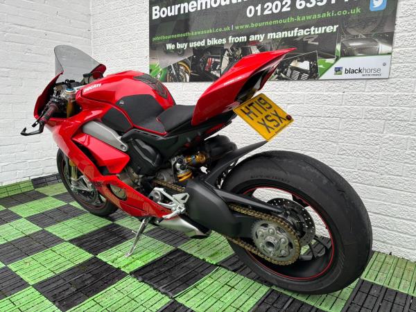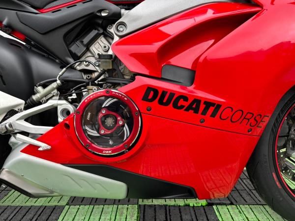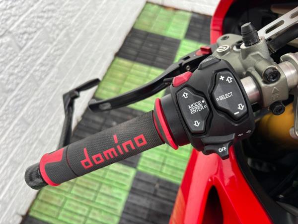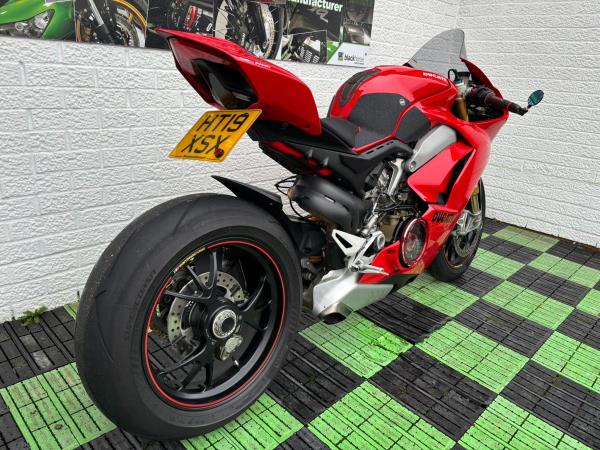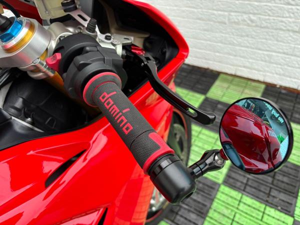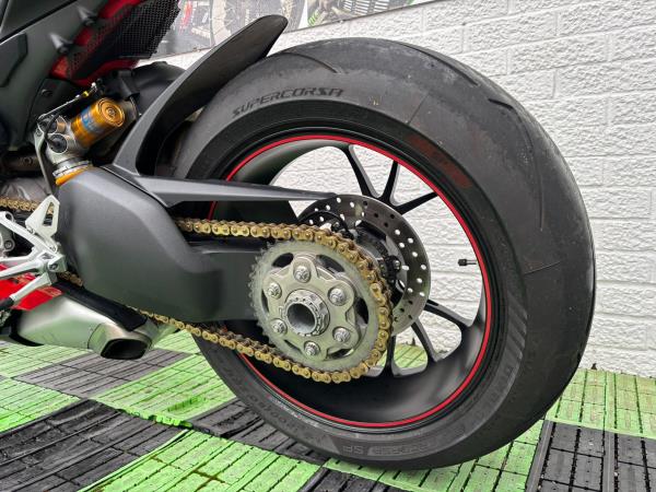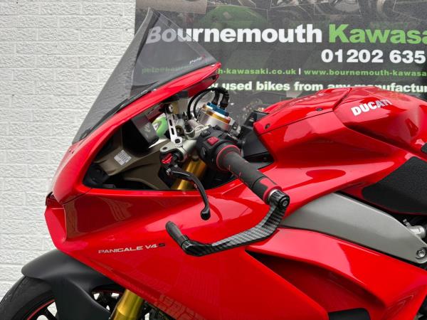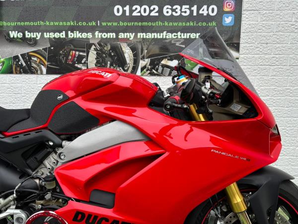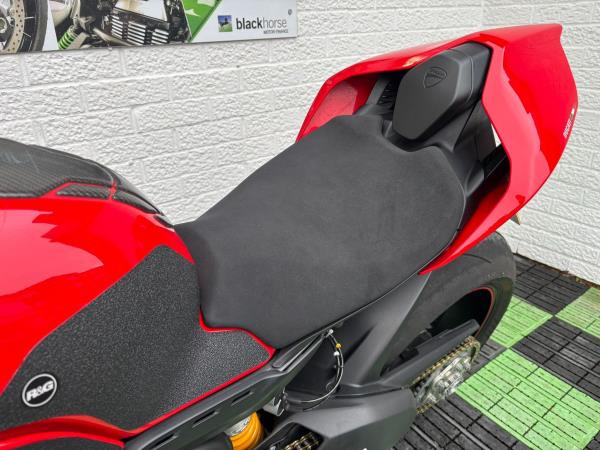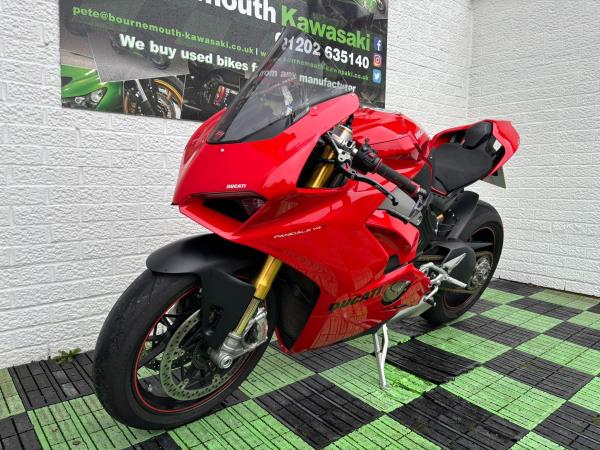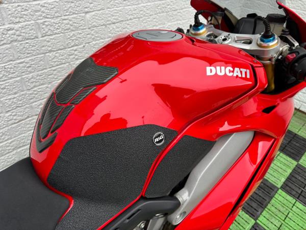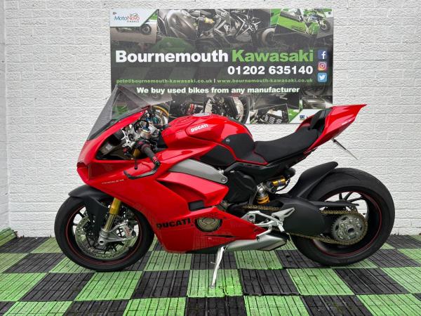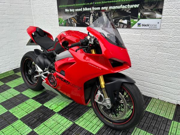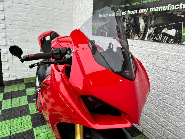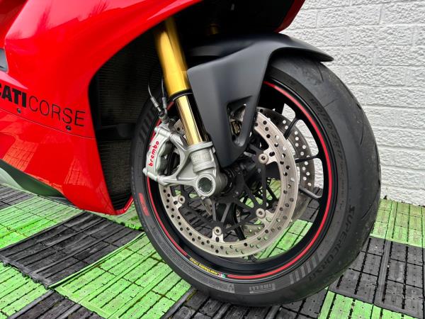 Ducati Panigale V4S, Registered April 2019 (19 Reg) 5 Owners from new, 10222 Miles only. Excellent Condition – Full Service history! V5 present. All keys & manuals etc. HPI Clear. *3 Months Warranty* Tail Tidy / Tank Grips and Tank Pad / Puig Screen / Bar End Mirrors / Clear Clutch Cover / LED Front Indicators *All used bikes under go a full 60 point health check*. Stunning Red Colour scheme…….Finance Available……Delivery Can Be Arranged…….Part Exchange Considered…….We are open to sensible offers so please call Pete or Tom for more information.