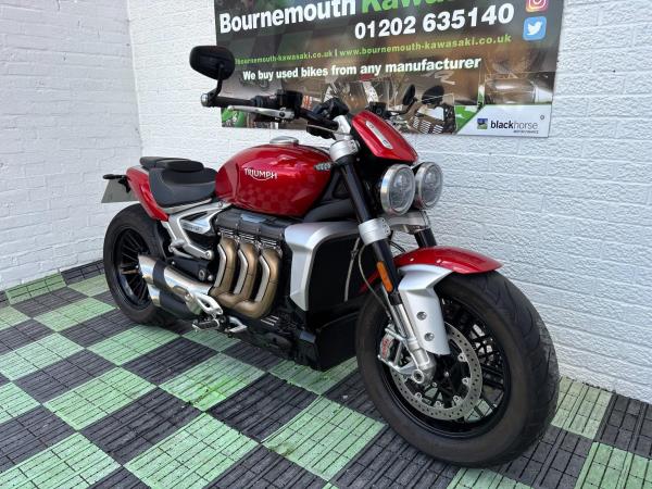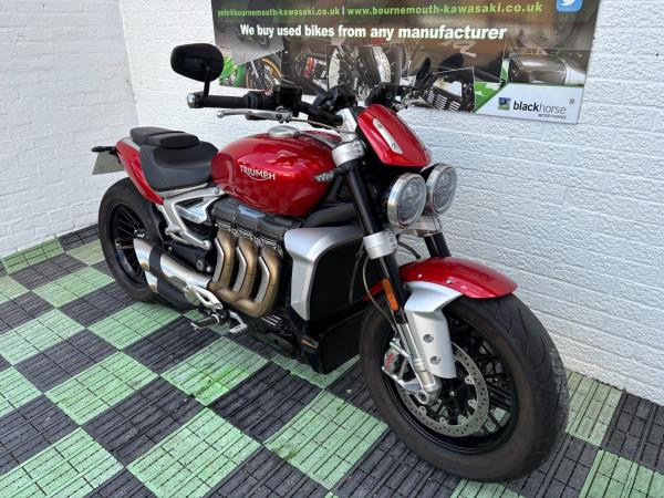 Triumph Rocket III, 2019 Model Registered October 2019 (69 Reg) 3 Owners from new! 2495 Miles only. Excellent Condition – Full Service History! V5 present. All keys & manuals etc. HPI Clear. *3 Months Warranty included* *Heated Grips* *All used bikes under go a full 60 point health check*. Stunning Red Colour scheme…….Finance Available……Delivery Can Be Arranged…….Part Exchange Considered…….We are open to sensible offers so please call Pete or Tom for any further information or to simply book a viewing.