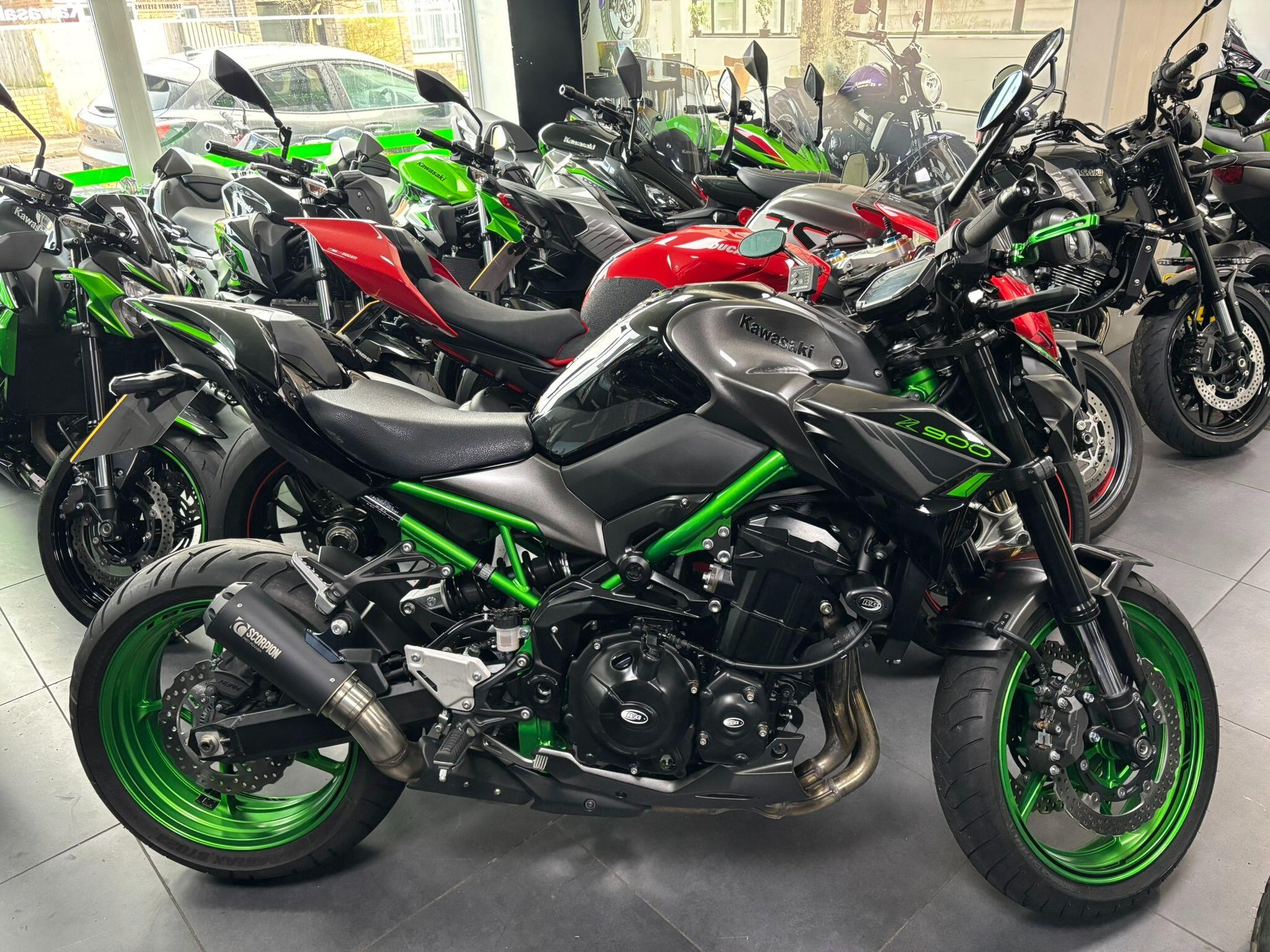 Kawasaki Z900 2023 Model, Registered April 2023, (23 Reg) 1 Owner from new. 5815 Miles. Excellent Condition – Full Service history! V5 present. All keys & manuals etc. HPI Clear. Extras include: Scorpion Exhaust, Solo seat cowl, Pillion seat, Heated Grips, Radiator Guard, Tail tidy, Crash Protectors *12 Months Warranty included* *All used bikes under go a full 60 point health check*. Stunning Metallic Black and Green Colour scheme…….Finance Available……Delivery Can Be Arranged…….Part Exchange Considered…….We are open to sensible offers so please call Pete or Tom for any further information or to simply book a viewing.
