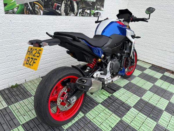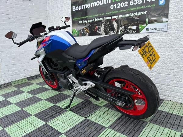 BMW F900 R 2025 Model Registered June 2025 (25 Reg) 1 Owner from new! 3449 Miles only. Excellent Condition – Full Service history! V5 present. All keys & manuals etc. HPI Clear. Rider packs include: Comfort pack – Heated Grips, Keyless Ride, Cruise Control / Sport Pack – Belly pan, Bar end mirrors / Dynamic Package – Riding Mode Pro, Gearshift Assist Pro, Dynamic ESA *16 Month Manufactures Warranty* *All used bikes under go a full 60 point health check*. Stunning White, Blue and Red Colour scheme……Delivery Can Be Arranged…….Part Exchange Considered…….We are open to sensible offers so please call Pete or Tom for any further information or to simply book a viewing.