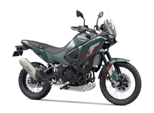 Distinctive rally-inspired styling sets Kawasaki’s new adventure machine apart. The KLE500 looks just as ready to get dirty on the trails as it is to cover a long highway journey in comfort. A blend of three stylistic aspects—an authentic rally-raid image, familiar street bike elements, and KX Motocross-inspired design touches—creates Kawasaki’s new adventure style.