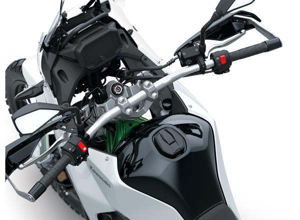 Exploring the next dirt road is an opportunity for riding enjoyment thanks to a well-balanced chassis and light, straightforward handling. The well-thought-out riding position lends the KLE500 a natural feel whether standing or sitting, while seamless bodywork lets the rider move around freely. A rider-focused and highly controllable character makes the KLE500 the ideal choice for any long adventure ride.