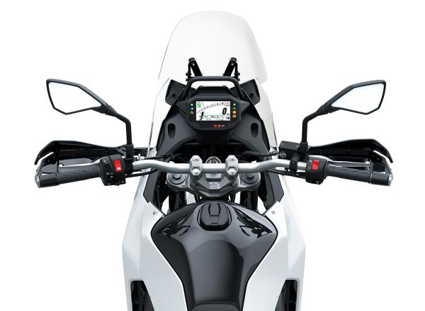 The SE model adds off-road-oriented features for exploring unpaved roads, while enhancing comfort on the street. A large windshield and hand guards improve comfort in a wide range of riding conditions. A large skid plate contributes to engine protection, adding to confidence off-road.