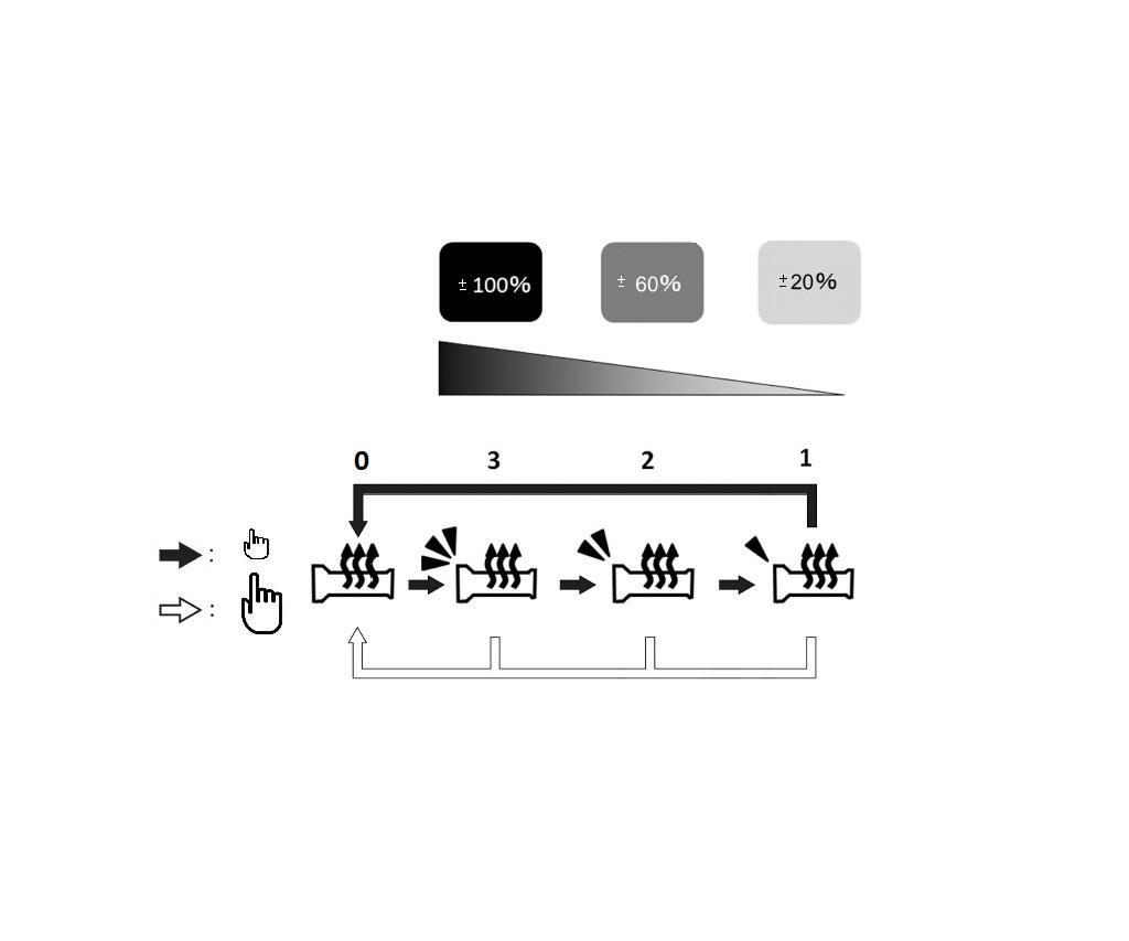 The grips feature 3 temperature levels (100%, 60%, 20%, Off).